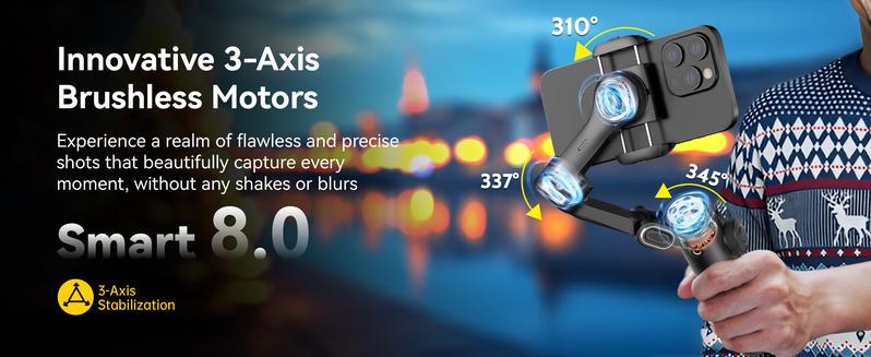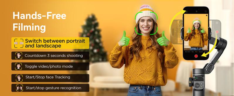 Smooth 3-axis stabilization, AI tracking, and a built-in extension rod—perfect for effortless, professional-quality mobile filming.