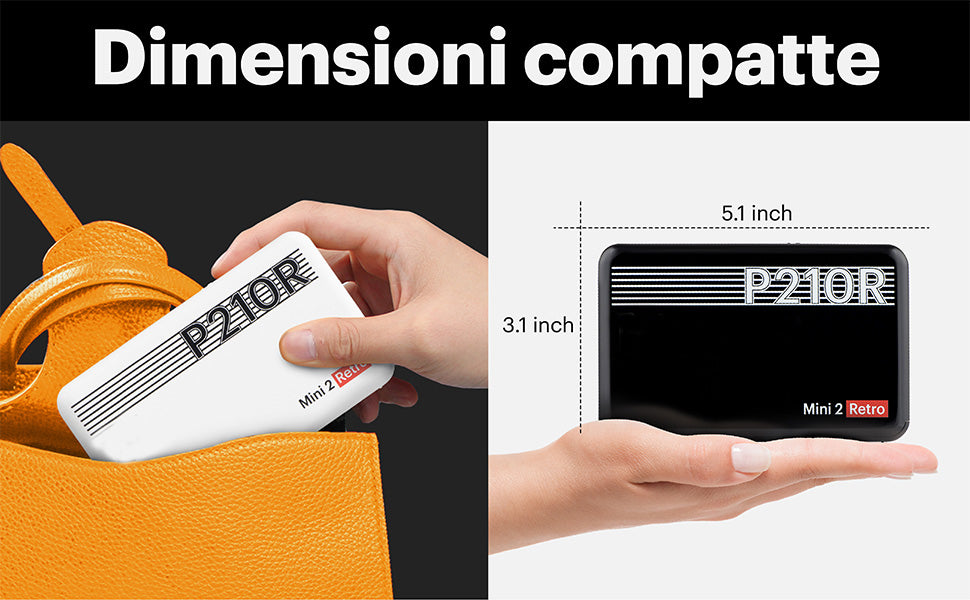 Small enough to fit in your hand, purse, or pocket—take the P210R Mini Retro printer anywhere and print your memories on the go.