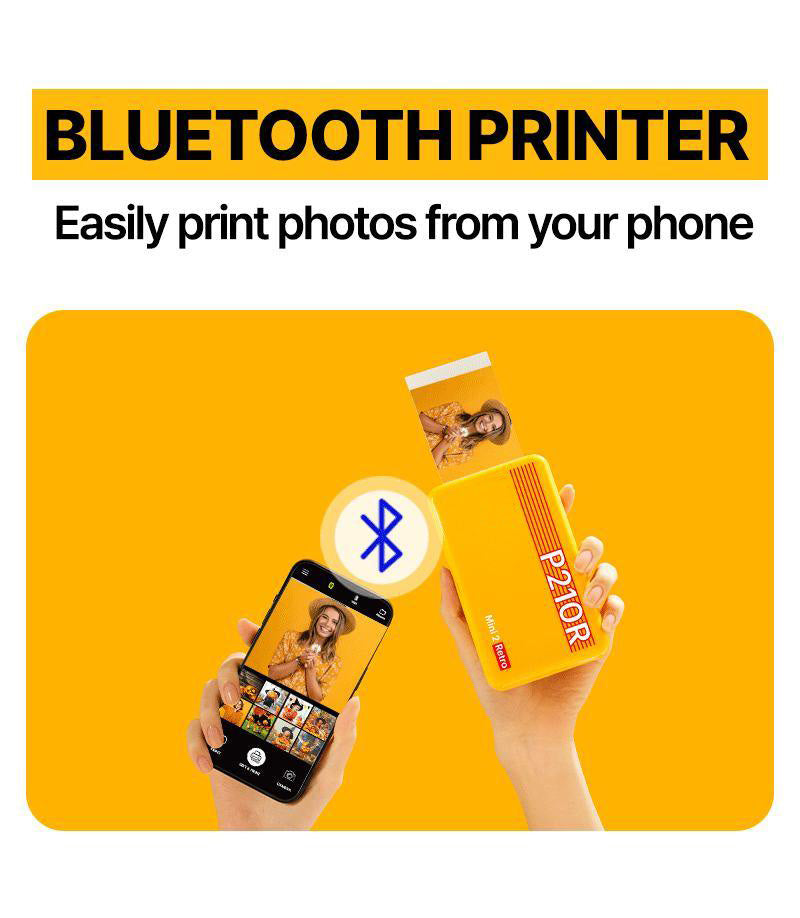 Print your favorite photos instantly from your phone—no wires, no hassle. The P210R Mini Retro Bluetooth Photo Printer brings your digital memories to life with just a tap.